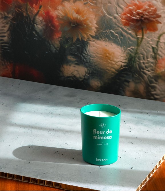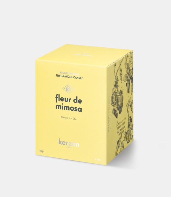 Solaire et lumineuse, Fleur de Mimosa rayonne d'une fraîcheur végétale éclatante, que l’on doit à l'étrange et méconnu Pistachier Lentisque. Le mimosa Kerzon dévoile sans artifices des notes de tête hespéridées, légèrement sucrées, un coeur floral irisé et un fond boisé cèdre et cachemire.