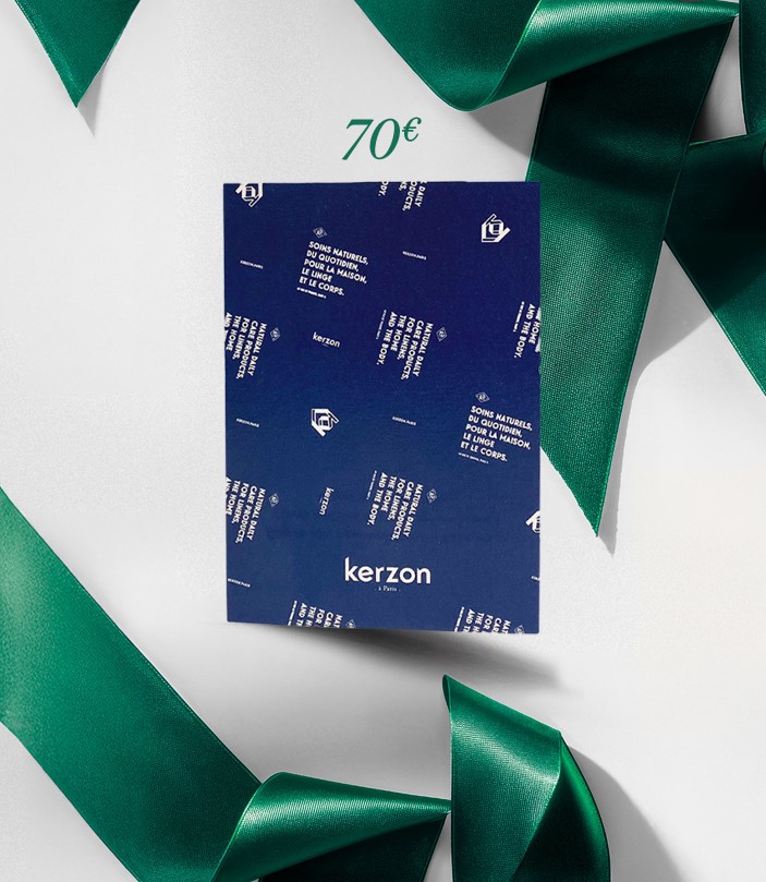 Faites plaisir à coup sûr avec notre carte cadeau personnalisée d'un montant de 70€, pour prendre soin de vos proches. Valable un an, elle peut être dépensée en plusieurs fois sur notre e-shop et à la boutique Kerzon, sous forme d'un bon d'achat.