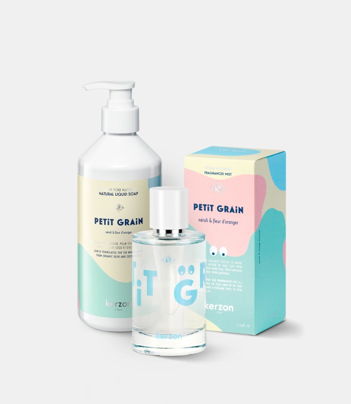 Spécialement inspiré par les plus petits, Petit Grain dévoile un accord rafraîchissant composé d’agrumes : néroli, fleur d’oranger, bergamote & petit grain. Associée à la douceur du musc blanc, comme un souffle sur la peau et relevé d’un fond légèrement boisé, sa fraîcheur et son sillage léger font le bonheur de toute la famille.