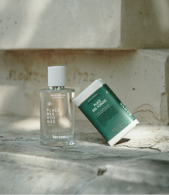 Le savon solide surgras Kerzon, riche en acides gras naturels, en beurre de karité et en huile d'amande douce bio, enveloppe la peau d’une mousse onctueuse et la parfume délicatement.